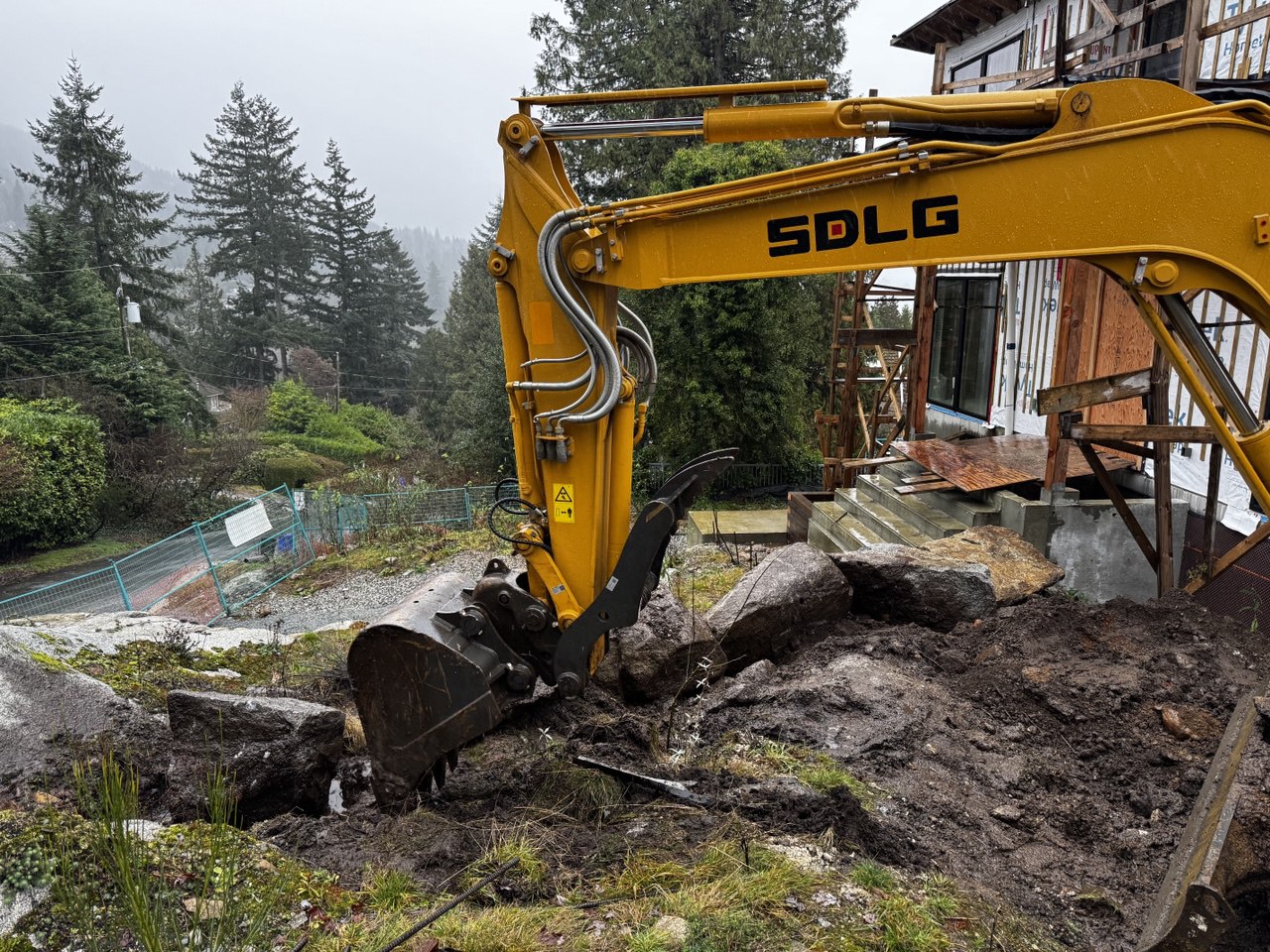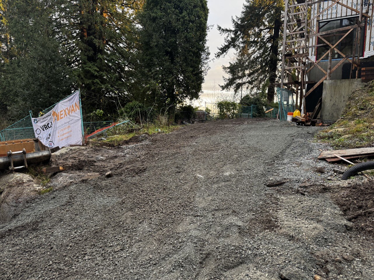 At the 3656 McKechnie project in West Vancouver, Nexvan Construction Management was responsible for the full scope of site preparation and landscaping work. The scope of this project included all stages of excavation, soil removal and backfilling, loading and unloading, hauling and off-site disposal of surplus soil, trenching and preparation of service routes (including electrical runs), grading, levelling, full base preparation, ground stabilization, and proper compaction. The project also involved hard landscaping work, including the preparation and installation of landscape block elements such as Allan Block, as well as the construction and installation of rock retaining walls using heavy equipment such as an excavator. In addition, gravel placement, grading, surface shaping, and hydro press/plate compaction were completed in accordance with the required construction standards. All necessary concrete works for the project were also carried out, and once the main scope was completed, the site was thoroughly cleaned and prepared for final delivery. In the final phase, boxing, finishing, and final surface preparation were completed, along with the full scope of soft landscaping, including final soil placement, preparation of green areas, lawn installation, and completion of the landscape layout. This project was delivered with a strong focus on quality workmanship, precise coordination across all stages, and a clean, professional finish meeting the client’s expectations.